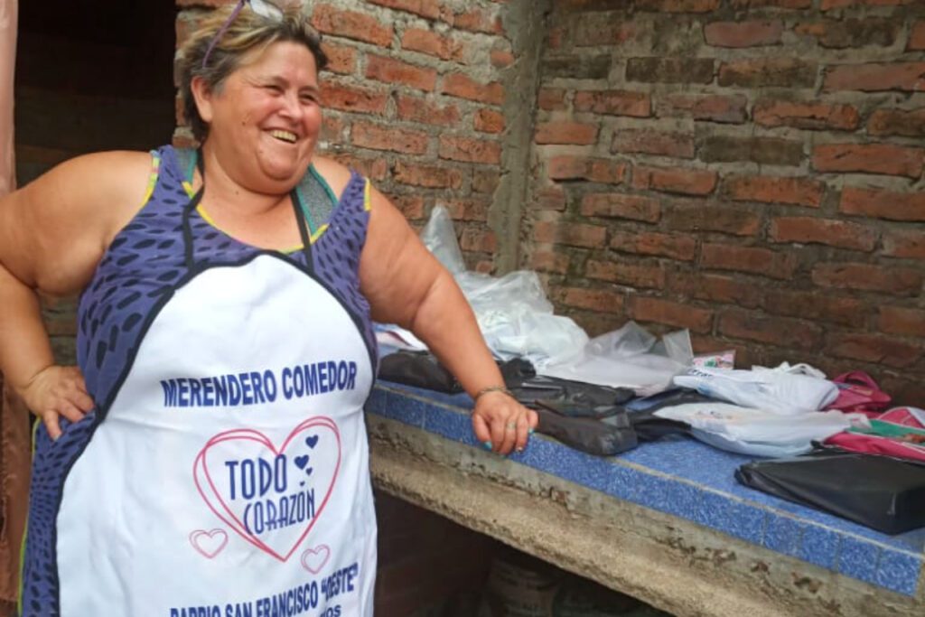 Mabel Paiz está al frente del comedor-merendero “Todo Corazón” que ella misma fundó en 2018 en el barrio San Francisco oeste de Concordia. “El lunes se da la comida, el martes hacemos la leche y el miércoles hacemos leche y comida”, precisó y marcó que cambiaron el horario para las 18, al momento de servir la cena “por el frío, porque hay gente muy grande para venir tarde y también por los chicos”.