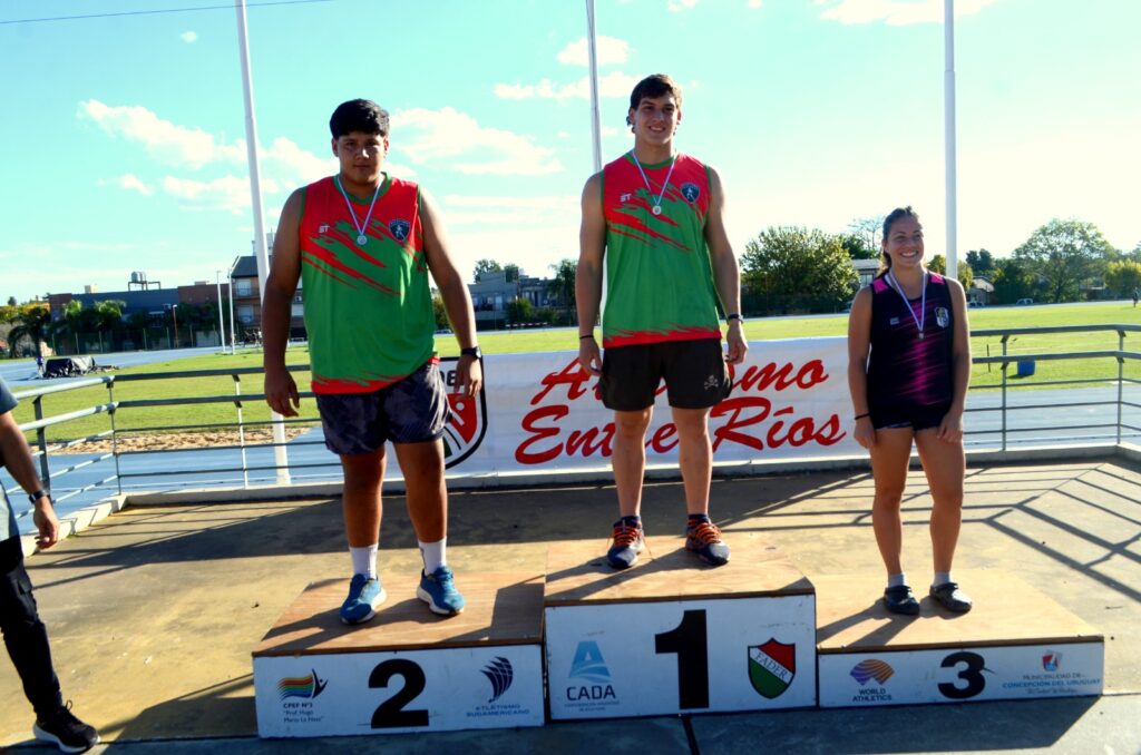 En la categoría U20, los logros fueron contundentes. En lanzamiento de bala, Thiago Natanael Bazualdo se consagró campeón provincial con una marca de 15.44 metros, seguido por Lucas Damián Miño (oriundo de La Criolla), quien alcanzó el segundo puesto con 14.47 metros, logrando así un destacado 1-2 para Concordia.
