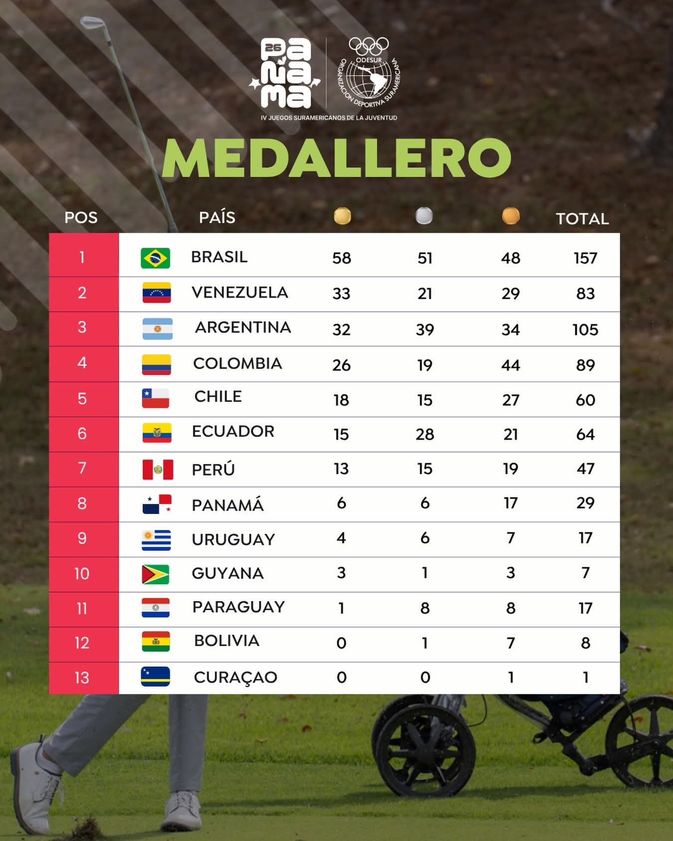 Argentina cerró su participación con 105 medallas en total, distribuidas en 32 de oro, 39 de plata y 34 de bronce, ubicándose en el tercer puesto del medallero general. La cifra confirma una continuidad en el rendimiento deportivo juvenil del país en este tipo de competencias, pero no explica por sí sola lo que ocurrió en la pista de atletismo.