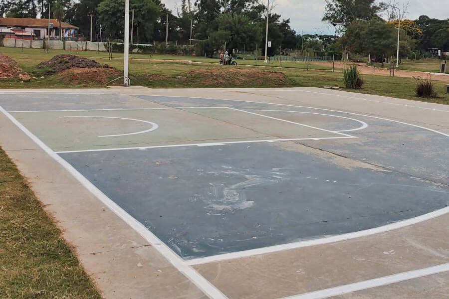 Sin prisa, pero sin pausa continúan los trabajos en la cancha 3x3 de la Costanera de Concordia.
