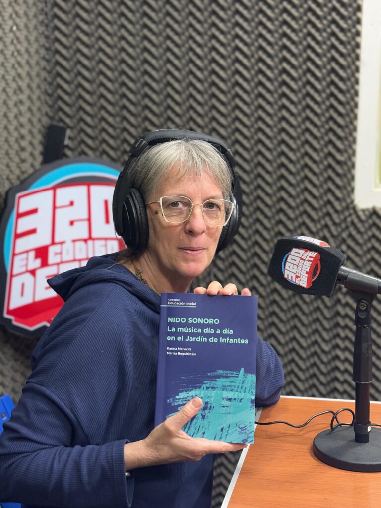 Con libro en mano, con olorcito a nuevo, con detalles en sus páginas que lo hacen una pieza literaria hermosa, Marisa Beguiristain participó de una entrevista en “3200 Radio”, en la que contó sobre el recorrido que hicieron junto a Karina Malvicini (de Buenos Aires), para que “Nido Sonoro. La música día a día en el jardín de infantes” se materializara y llegara, especialmente, a docentes del nivel inicial.